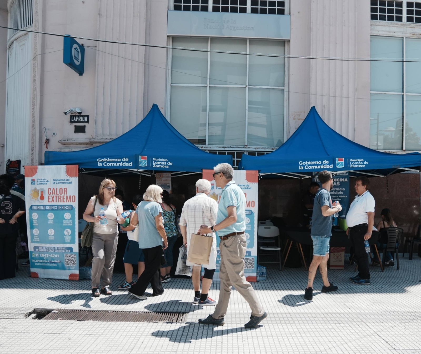 Una de las postas funcionó recientemente en la intersección de la peatonal Laprida y España, donde vecinos y vecinas accedieron a agua potable y asesoramiento. Además, se recomendó evitar la exposición directa al sol entre las 11 y las 16 horas, el período de mayor riesgo mientras se mantenga vigente la alerta por altas temperaturas.