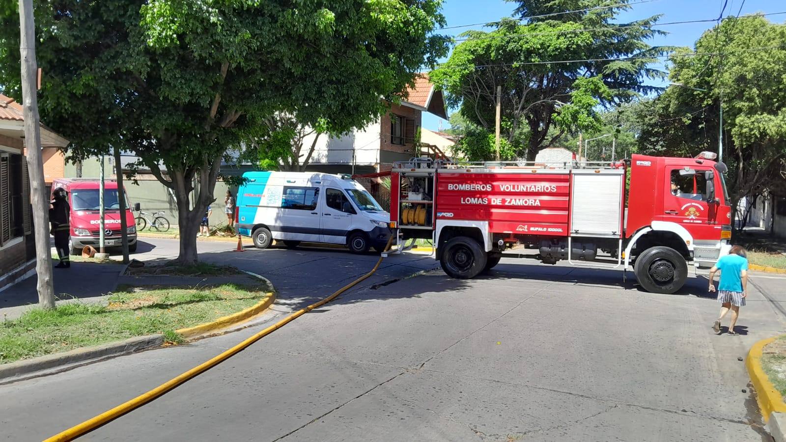 El personal de bomberos actuó de inmediato en dos frentes: el combate del fuego y la búsqueda de posibles víctimas. Fue así como localizaron y asistieron a la mujer mayor que se encontraba en el interior. Paralelamente, se desplegó un operativo coordinado con otras fuerzas. Una ambulancia del servicio 107 de Emergencias Lomas le brindó atención médica en la vía pública para evaluar su estado, mientras efectivos de Defensa Civil y de la Policía colaboraron en las tareas de seguridad y contención.