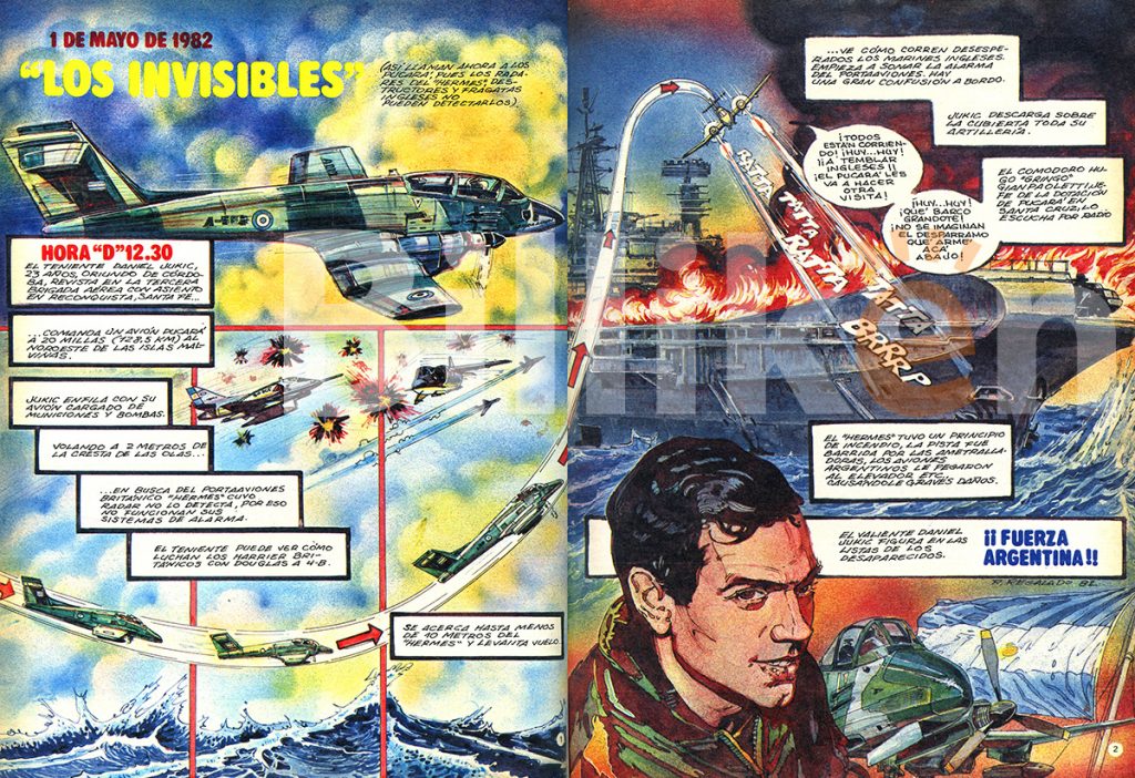 La obra de Walther Taborda es un ejercicio de virtuosismo visual que se divide en tres actos fundamentales, cada uno centrado en un modelo de avión que marcó la guerra: el Skyhawk, el Pucará (un guiño inevitable a la producción nacional y a la resistencia terrestre) y el Super Étendard. Junto al guionista Néstor Barron, Taborda no solo dibujó aviones; dibujó el miedo, la adrenalina y la soledad del piloto en una cabina que se convertía en un ataúd o en un pedestal de gloria.