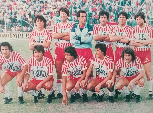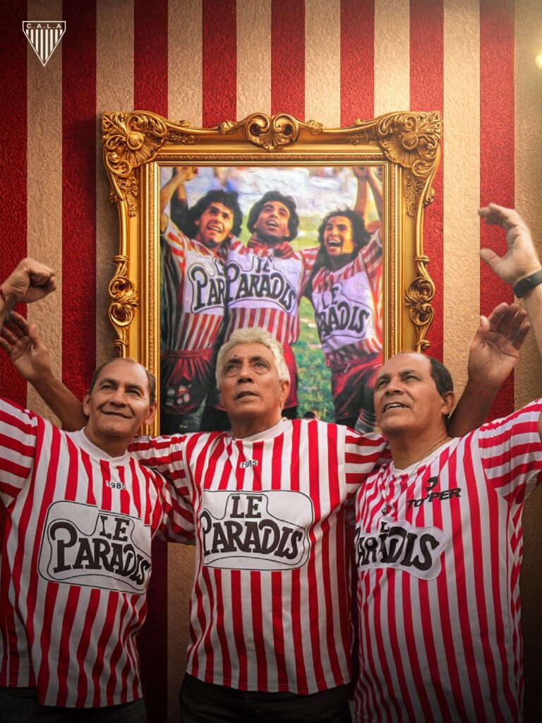 A cuarenta años de aquella fotografía tomada tras el triunfo por 2 a 0 en la cancha de Banfield, la imagen volvió a cobrar vida frente a los hinchas. Fue en aquel encuentro de 1985 cuando el “Negro” Garay selló el resultado y dio paso al festejo inmortalizado junto a Escobedo y Molina, con la camiseta que lucía el emblemático logo de la discoteca “Le Paradis”. Esa casaca, asociada a una época particular del club, volvió a ocupar el centro de la escena durante el encuentro en el Gallardón, reforzando su lugar en la memoria emotiva del hincha.