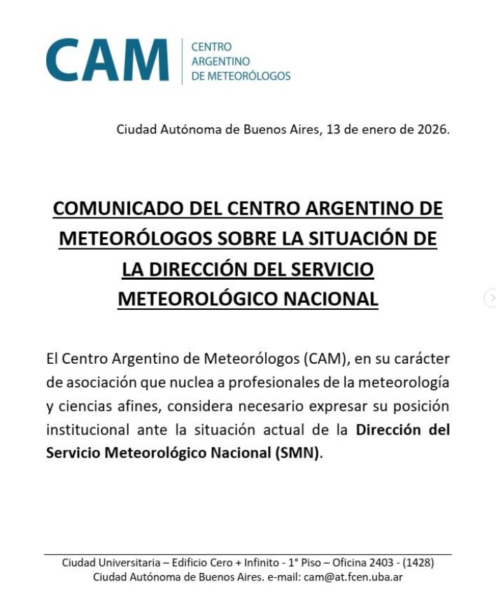 El SMN es el encargado de producir información meteorológica y climática, desarrollar sistemas de alerta temprana, contribuir a la reducción del riesgo de desastres y representar al país ante foros internacionales especializados. “La conducción de un organismo con estas responsabilidades requiere formación específica y conocimiento profundo del sistema atmosférico y climático”, señaló el CAM en su comunicado.