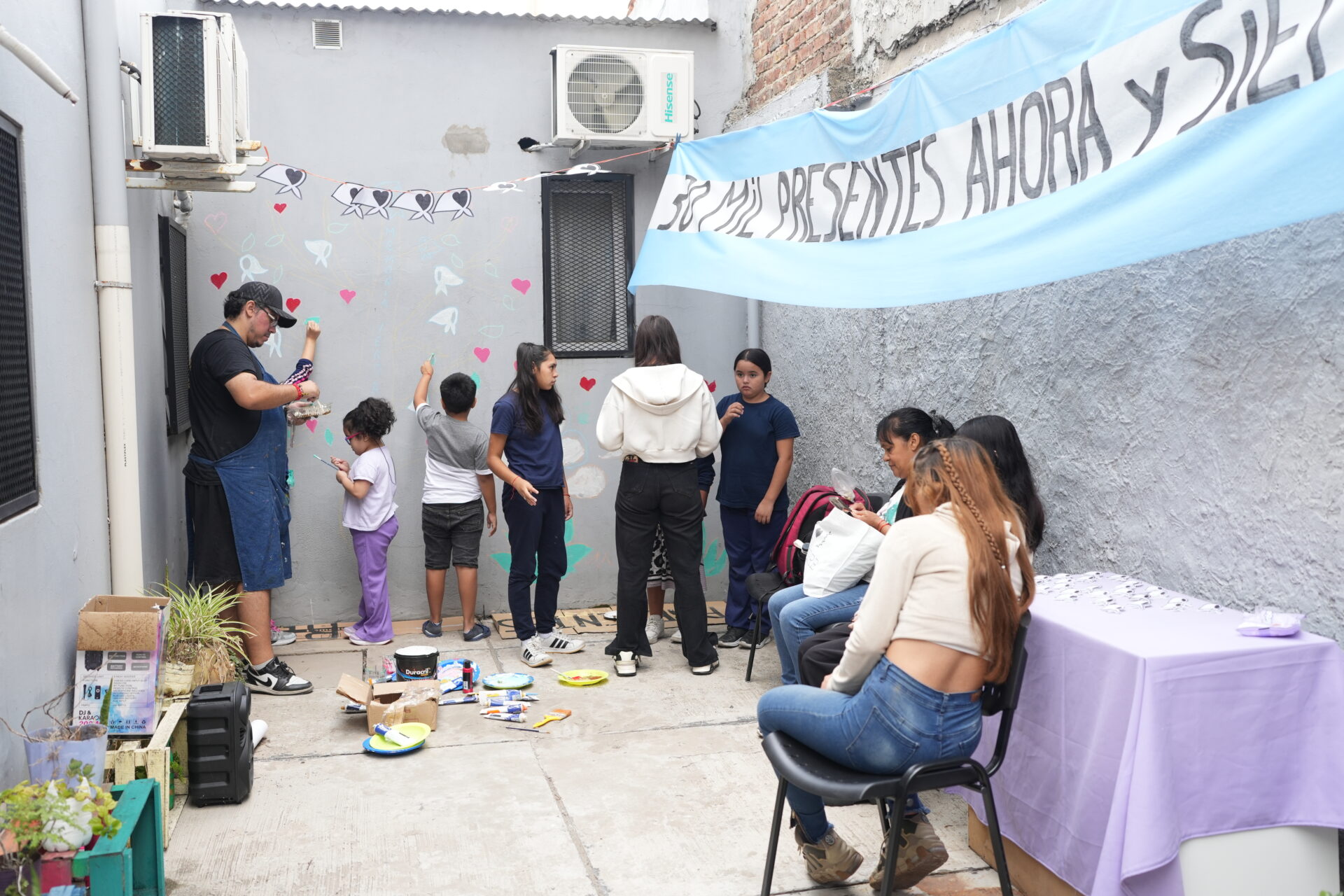 Los equipos de salud —médicos, enfermeros, administrativos y trabajadores sociales— compartieron esas jornadas con la comunidad del barrio. En cada centro, las actividades tomaron formas diversas. Hubo talleres donde las palabras abrieron paso al relato de los años más oscuros del país, siempre con el eje puesto en las banderas de Memoria, Verdad y Justicia. También se realizaron murales colectivos, que ahora quedan como marcas visibles en paredes donde habitualmente solo se leen indicaciones médicas o carteleras sanitarias.