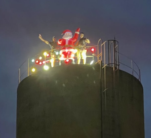 el trabajo consistió en la colocación de una figura de Papá Noel en la parte más alta de un tanque de agua que supera los treinta metros de altura. El objetivo principal fue que la imagen del personaje navideño pudiera ser divisada claramente por los miles de conductores que transitan a diario por la mencionada vía rápida. Para lograr este fin, los vecinos realizaron el complejo ascenso al tanque con la figura, asegurando su correcta y segura instalación en un punto tan elevado.